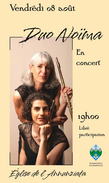 With a varied repertoire of works written for two flutes as well as finely chosen arrangements, from the Baroque era to the present day, Duo Noïma provides audiences with a unique musical experience, blending both the melodic qualities of the instrument as well as it’s percussive and aerial aspects so well exploited in the music composed today.